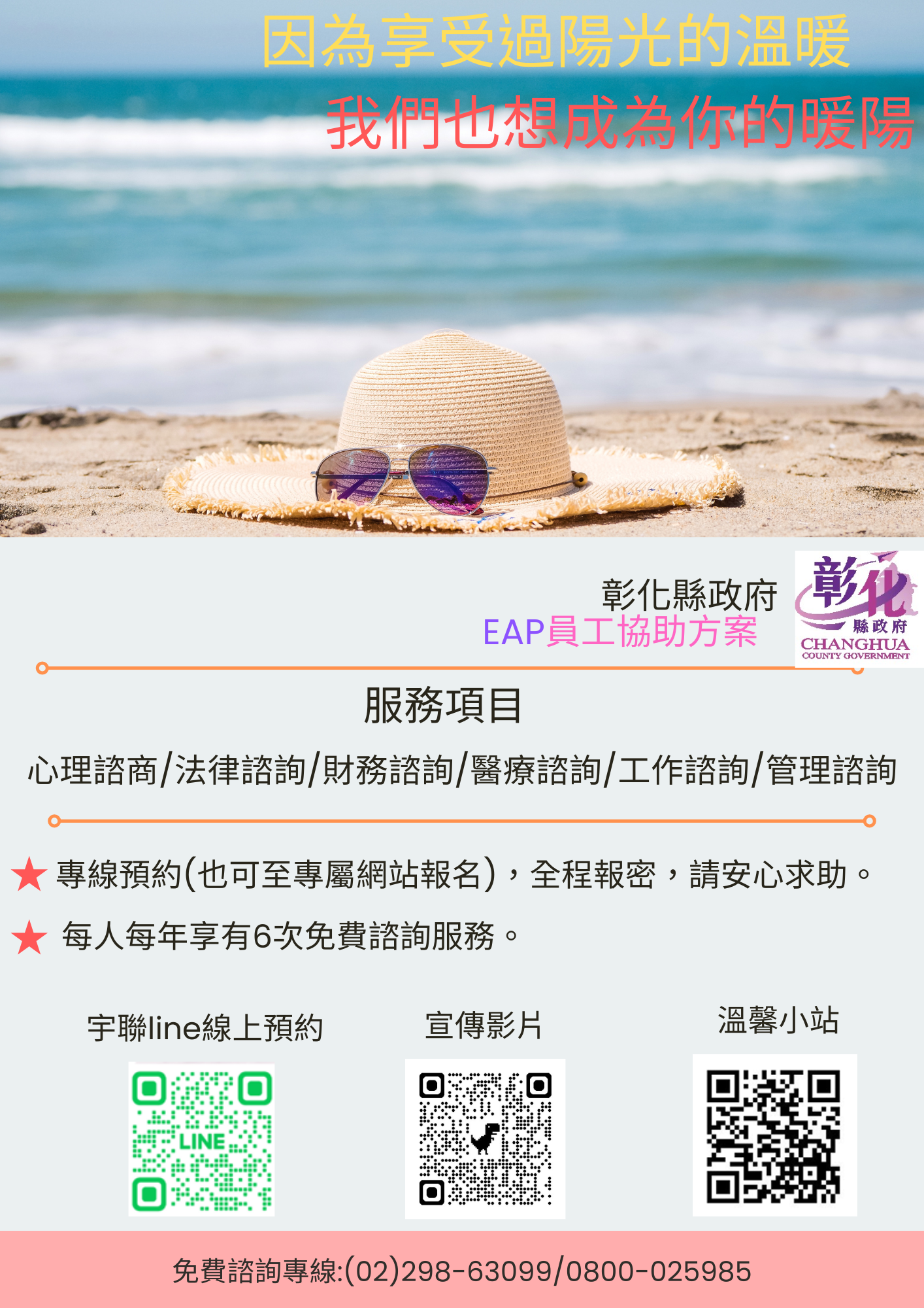 1150422(彰化縣政府函附件2) 為營造友善職場環境並促進同仁身心健康,本府員工協助方案(EAP)提供多元專業諮詢服務 附件2宣傳海報.png